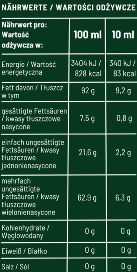 To olej o naukowo potwierdzonych wartościach odżywczych, stworzony z myślą o najwyższej jakości i skuteczności.